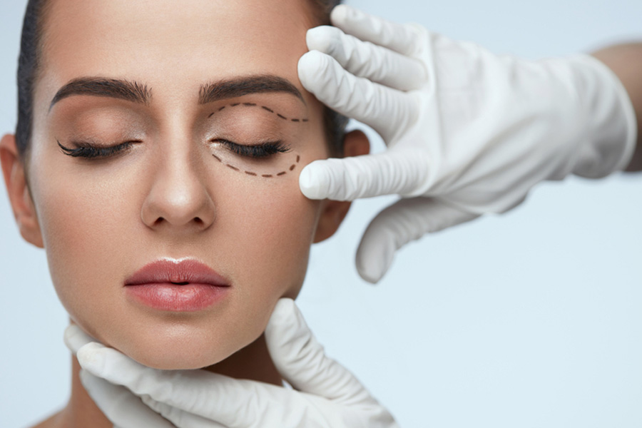 How do plastic surgery correct excessive bagginess and wrinkling of the eyelids?